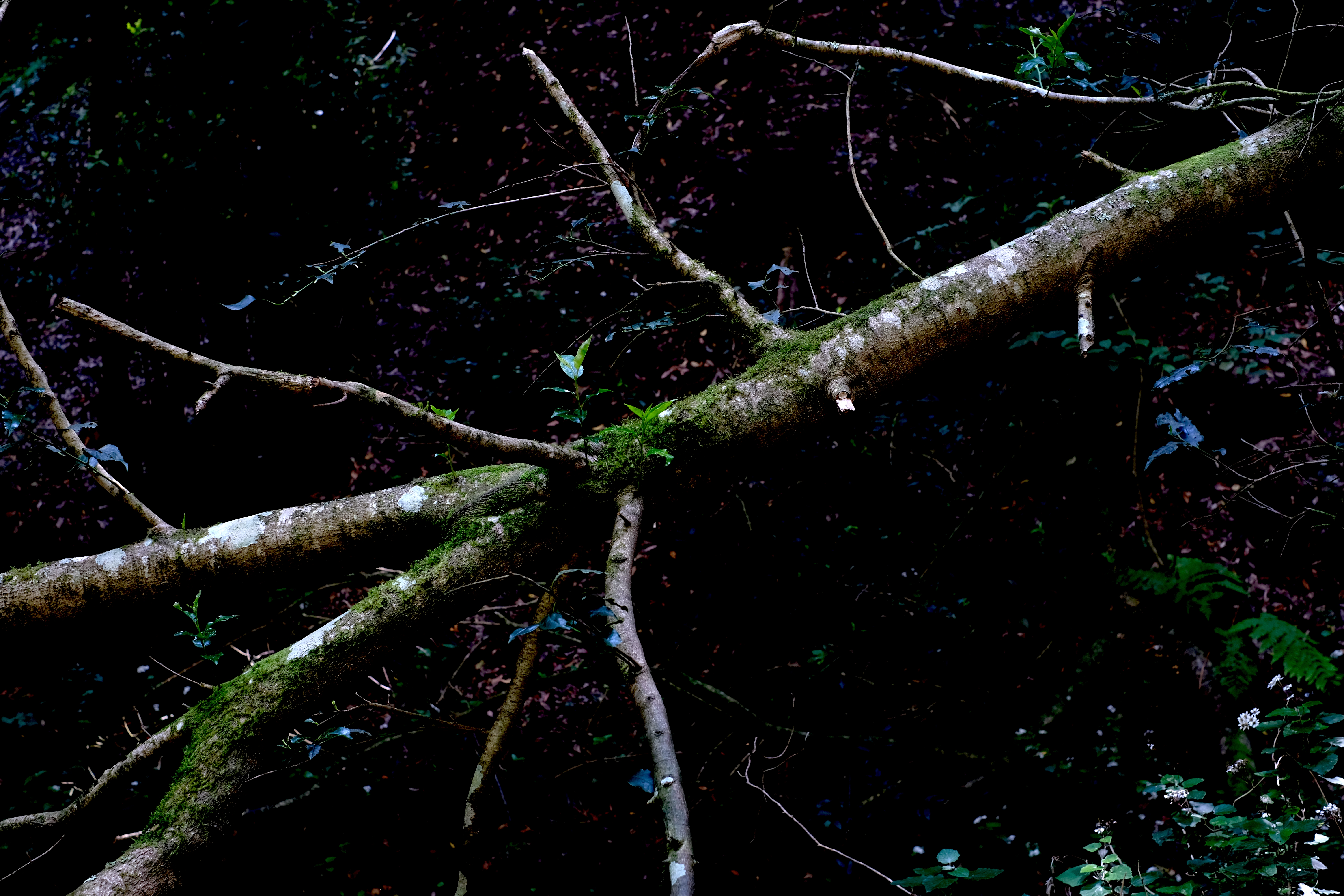 I sought to document the friction between the volcanic mass and the erasing presence of the ocean. In between, the human leaves a fragile mark: a cable straining against a trunk, a road disappearing into the mist, the pastel geometry of a house claiming space against the dark, tangled laurel.